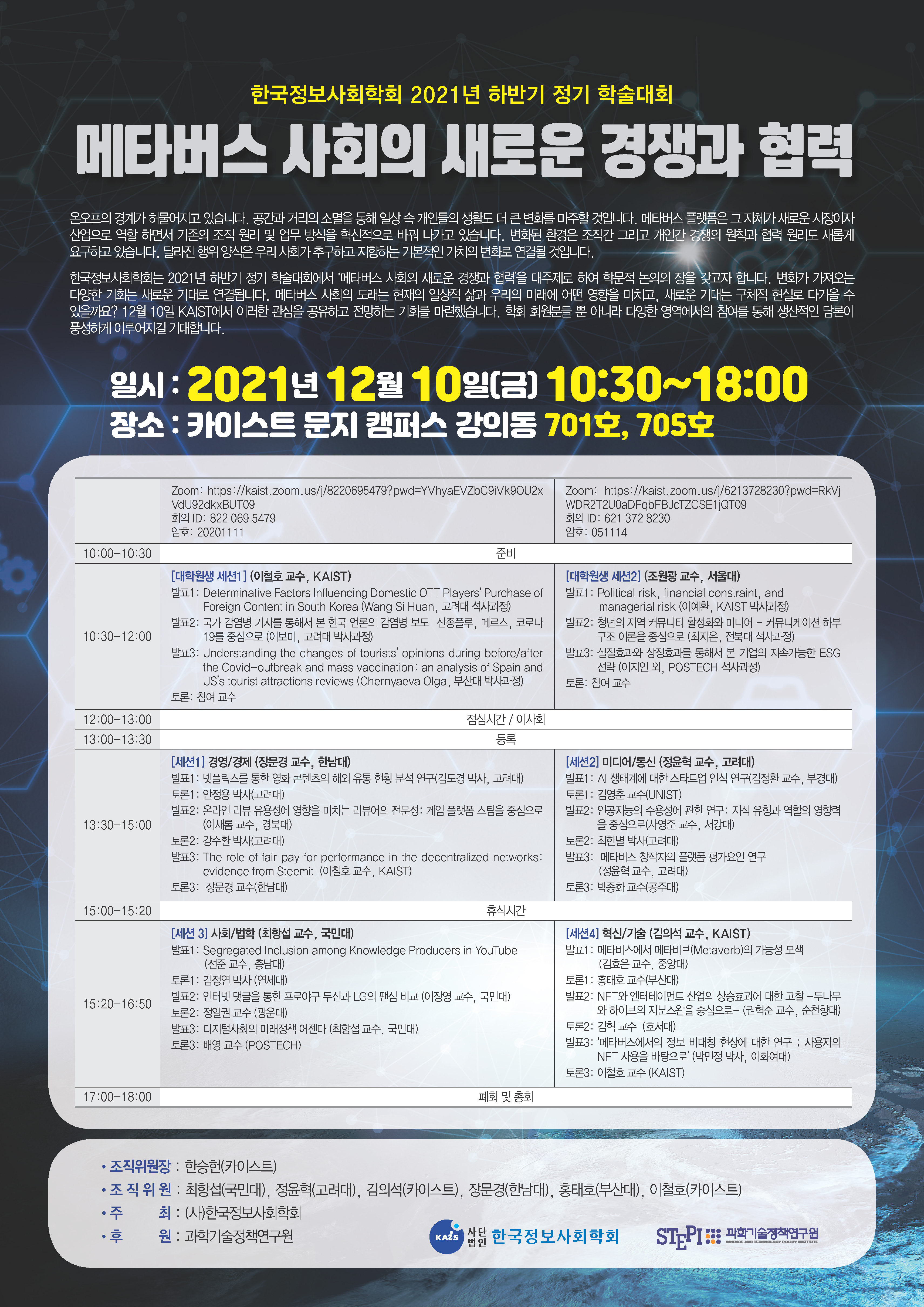 ■ 장소: 카이스트 문지캠퍼스 강의동 701/705